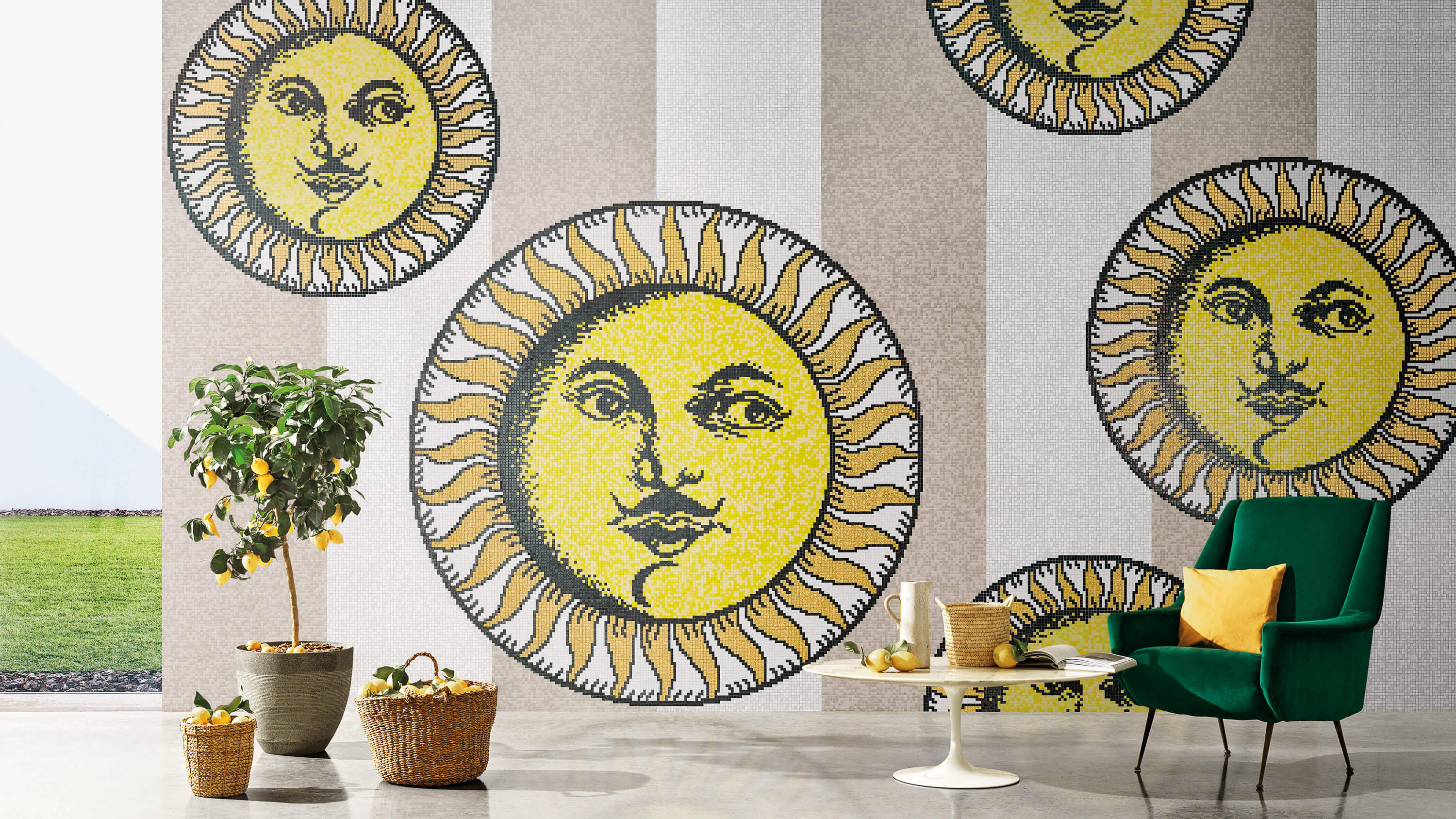 The mosaic decorations are the result of the company's multi-year collaboration with internationally renowned designers: from geometric patterns to floral motifs, from classic to pop inspired designs.