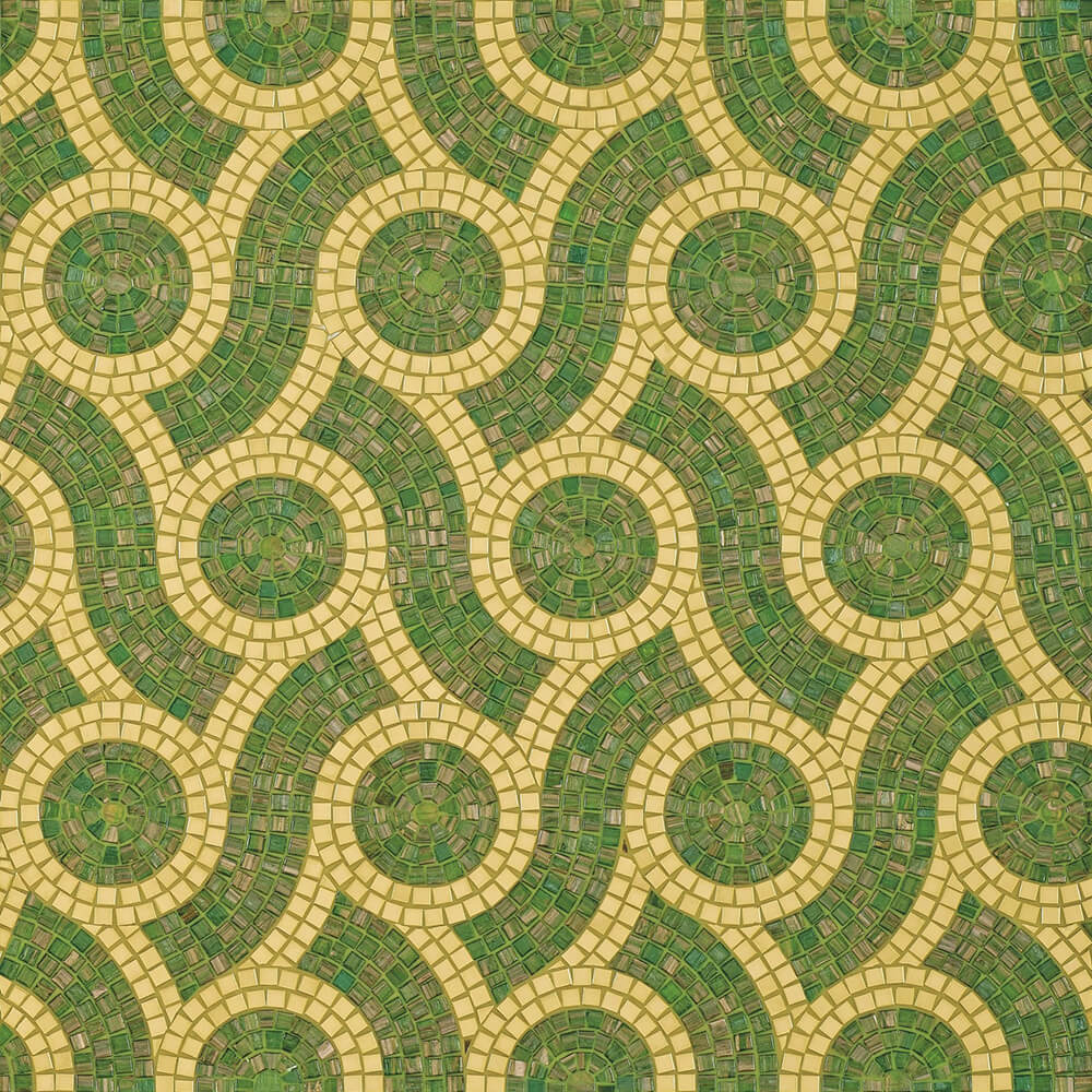 Especially vibrant, shimmering colors are characteristic of the Smalto series mosaic. Using artisan techniques, the enamel granules are added to the glass where they color the tesserae with a particular flamed effect, making them unique and one-of-a-kind.