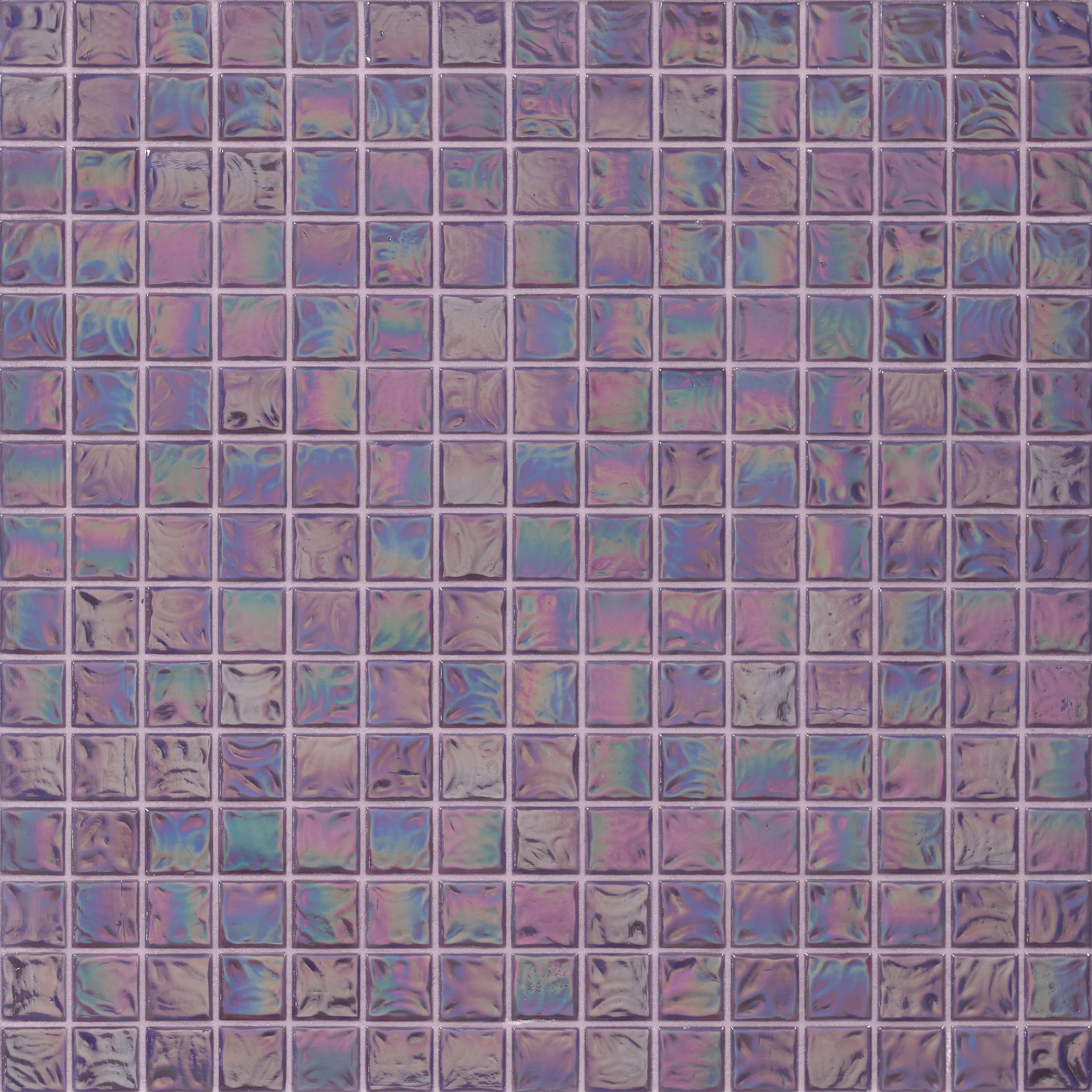 The Glow series is made up of glass tesserae that display a wavy surface with iridescent reflections. They are produced and colored with oxides that, fusing completely with the glass, allow the creation of pure colors. The wavy effect is obtained through the use of a special mold. The iridescence, instead, is achieved by spraying a chemical product on the incandescent glass tesserae that, reacting to the heat, produces this very sophisticated, elegant effect.